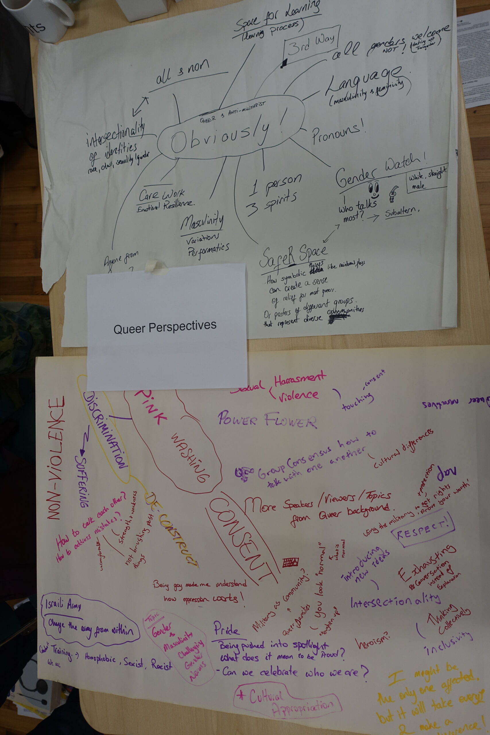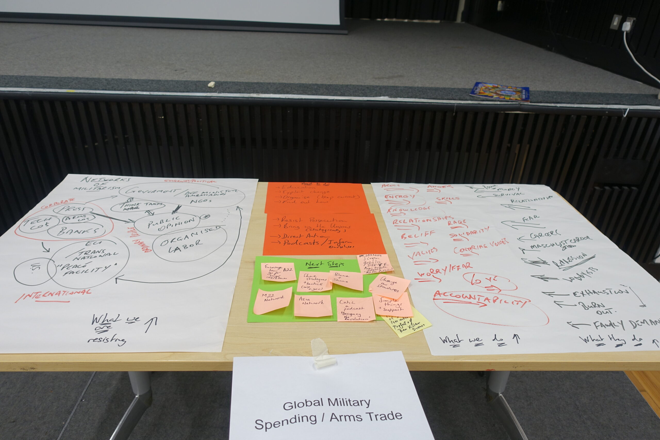 Heute gibt es zwei Workshops in einem: Conversations with activists from Eritrea + Refusing Military Service in Turkey. In Eritrea kann im Prinzip jede*r jederzeit in den Militärdienst eingezogen werden. Der Zeitraum, in dem die Wehrpflicht gilt ist nicht beschränkt. Eingesetzt werden die Menschen einfach dort, wo sie von der Regierung gerade gebraucht werden. Die Militärzeit ist so schlimm, dass häufig die jüngeren Kinder, deren ältere Geschwister schon beim Militär waren, versuchen, dem zu entkommen. In der Türkei wiederum gibt es eine Grundausbildung und von dem Rest der Wehrpflicht ist es teilweise möglich sich frei zu kaufen. Der Workshop war so interessant, dass wir gleich erstmal ein Folgemeeting vereinbart haben, um nochmal länger über die Situation in Eritrea sprechen zu können.